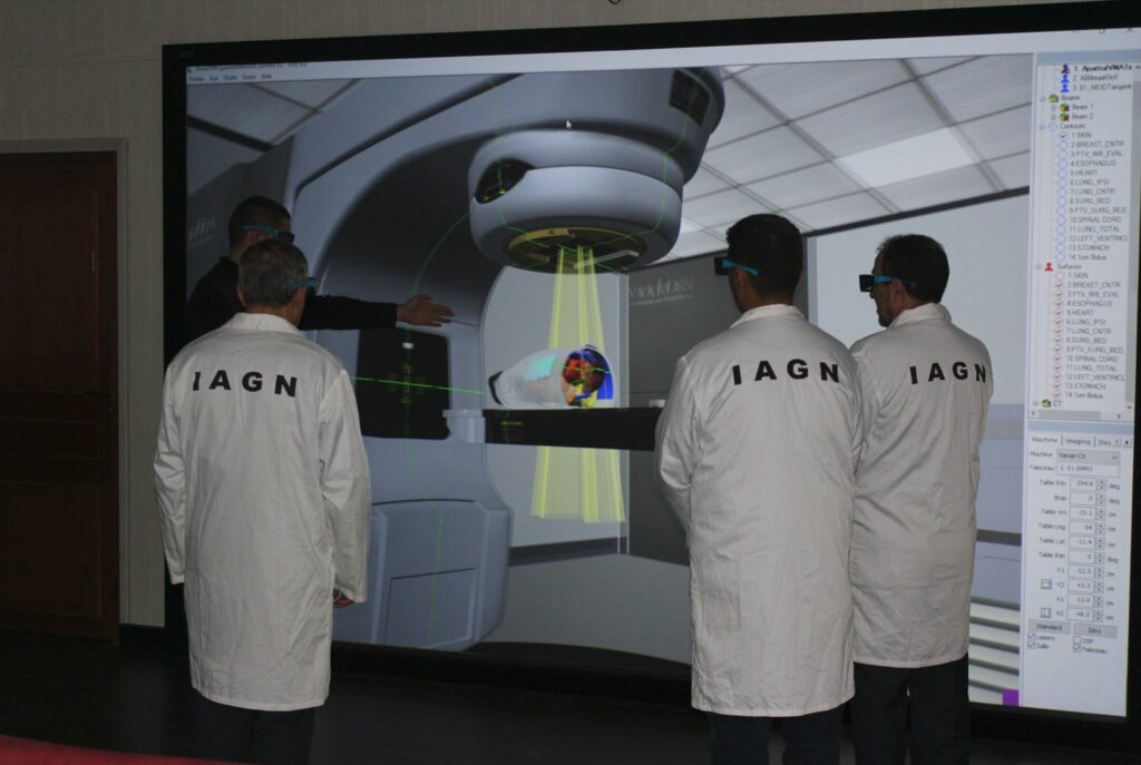 Le simulateur VERT (Virtual Environment Radiotherapy Training) utilisant les techniques de projection stéréoscopique permet de créer un environnement virtuel en 3D regroupant une salle de traitement de radiothérapie constituée d’un accélérateur linéaire de particules (LINAC), un patient et un équipement de dosimétrie et d’assurance qualité…
